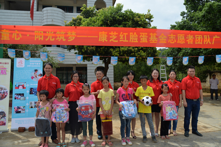 7月2-3日,康芝紅臉蛋基金志愿者團隊前往廣西賀州三合村小學進行愛心探訪。此次,康芝紅臉蛋向學校捐贈了愛心專項基金以及愛心物資一批,中山愛護日用品有限公司也為活動捐贈了愛心物資——愛護嬰童護膚品一批,志愿者們則為孩子們送上了各式各樣的愛心禮物,并與學校師生共同度過了一段歡樂的時光。