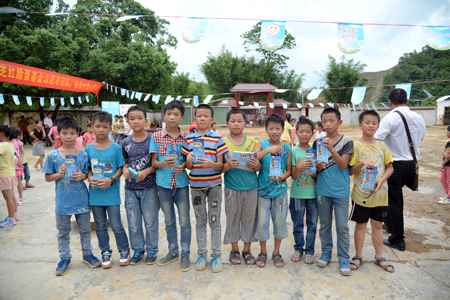 此次探訪,志愿者們提前了解到學校體育教學設施落后,辦公用品匱乏。當天,由李幽泉先生代表康芝紅臉蛋基金向三合村小學捐贈愛心專項基金和愛心藥箱。愛心基金將用于學校配置體育器材和辦公電腦等物資,為孩子們創造更好的運動條件,為老師們提供更好的辦公環境。隨后,在場的康芝高管人員一同為孩子們發放愛心禮包。