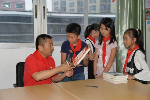 隨后,在現場領導嘉賓、媒體朋友及志愿者的見證下,洪江游先生和楊涌斌校長共同為“愛心圖書館”揭牌。在面貌一新的圖書館內,洪江游先生與熱愛閱讀的學生代表進行了閱讀分享,并向孩子們贈送自己簽名的兒童讀物,鼓勵大家培養健康良好的閱讀習慣,保持求知探索的熱情。當天,由康芝紅臉蛋基金捐贈的乒乓球桌、球拍等器材也派上了用場,嘉賓和學校師生現場體驗了一把運動的樂趣。