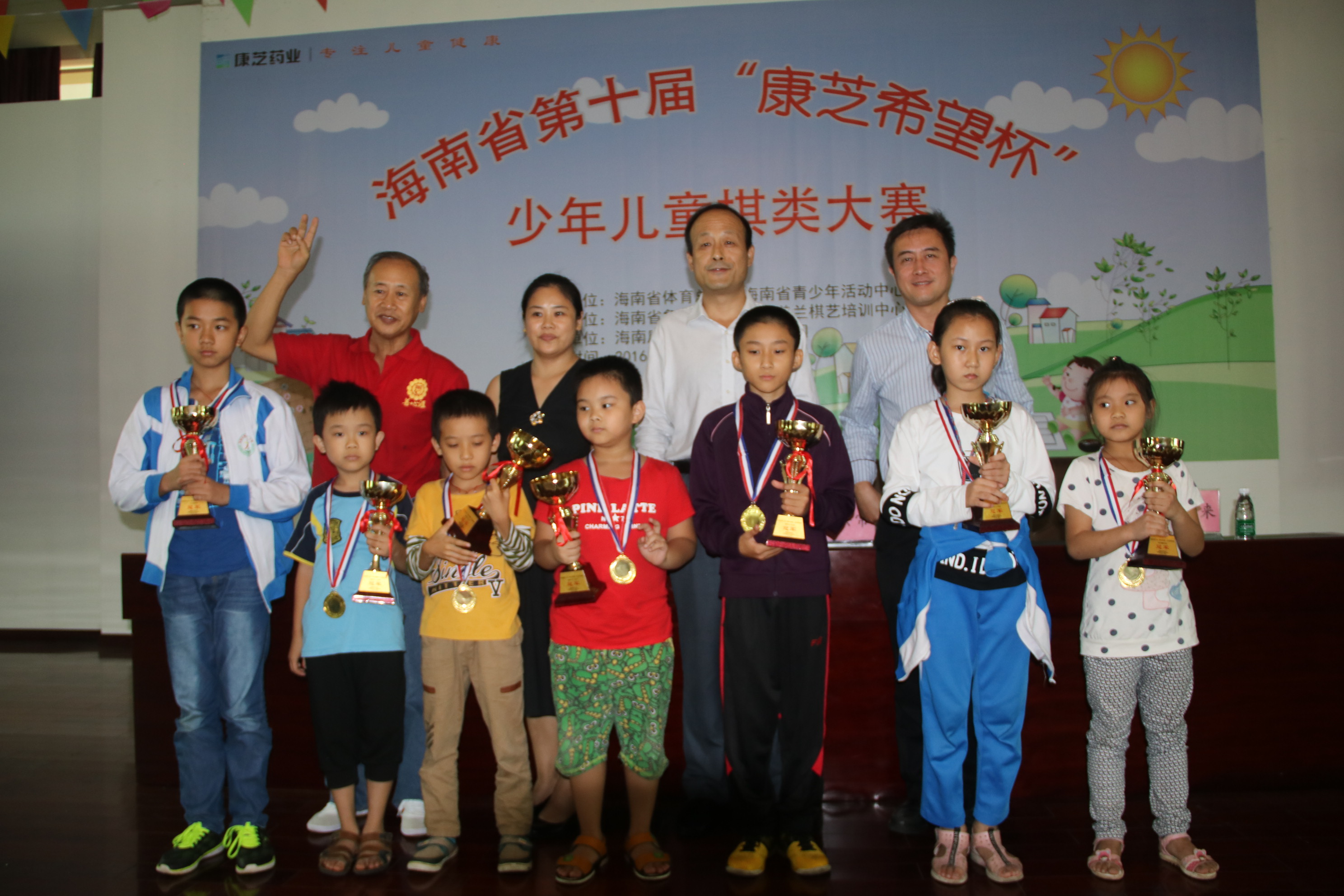 11月5日至6日,由海南康芝藥業股份有限公司獨家冠名的海南省第十屆“康芝希望杯”少年兒童棋類比賽在康芝藥業海南總廠正式開賽。海南省體育總會副秘書長林彬先生、海南省青少年活動中心副主任符文生先生、海南省象棋協會副會長王悅武先生、海南省象棋協會秘書長、海口美蘭棋藝培訓中心校長王翠珠女士、康芝藥業海南總廠人事行政總監王春來先生等一同出席開幕儀式并現場觀賽。