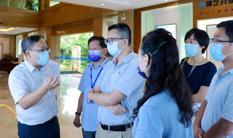 2022年8月24日,海南省發(fā)改委調研組蒞臨康芝藥業(yè)調研指導。海南省發(fā)改委副主任呂先志,海南省發(fā)改委產業(yè)處副處長邱波,海南省商務廳投資促進處副處長韓艷濤,海南省工信廳運行處副處長李嫣,高新區(qū)管委會副主任馬躍等領導共同參加本次調研活動,康芝藥業(yè)董事長洪江游帶領公司領導班子熱情接待了調研組一行。