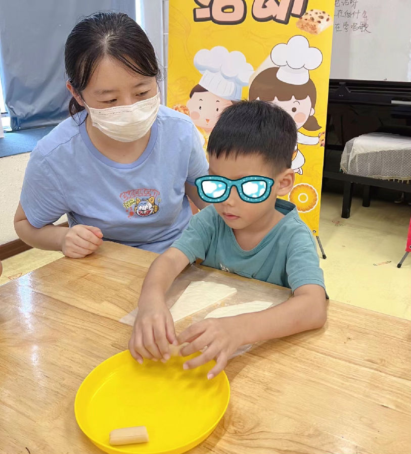 活動現場,來自康芝紅臉蛋基金和廣州市心友心智障礙者服務協會的志愿者們手把手教20名自閉癥兒童動手制作香腸面包。志愿者首先為孩子們準備好制作香腸面包的材料及工具,并認真地介紹了制作面包的流程,而孩子們天生充滿了好奇心,在志愿者講解的過程中,就已經迫不及待開始大展身手了。