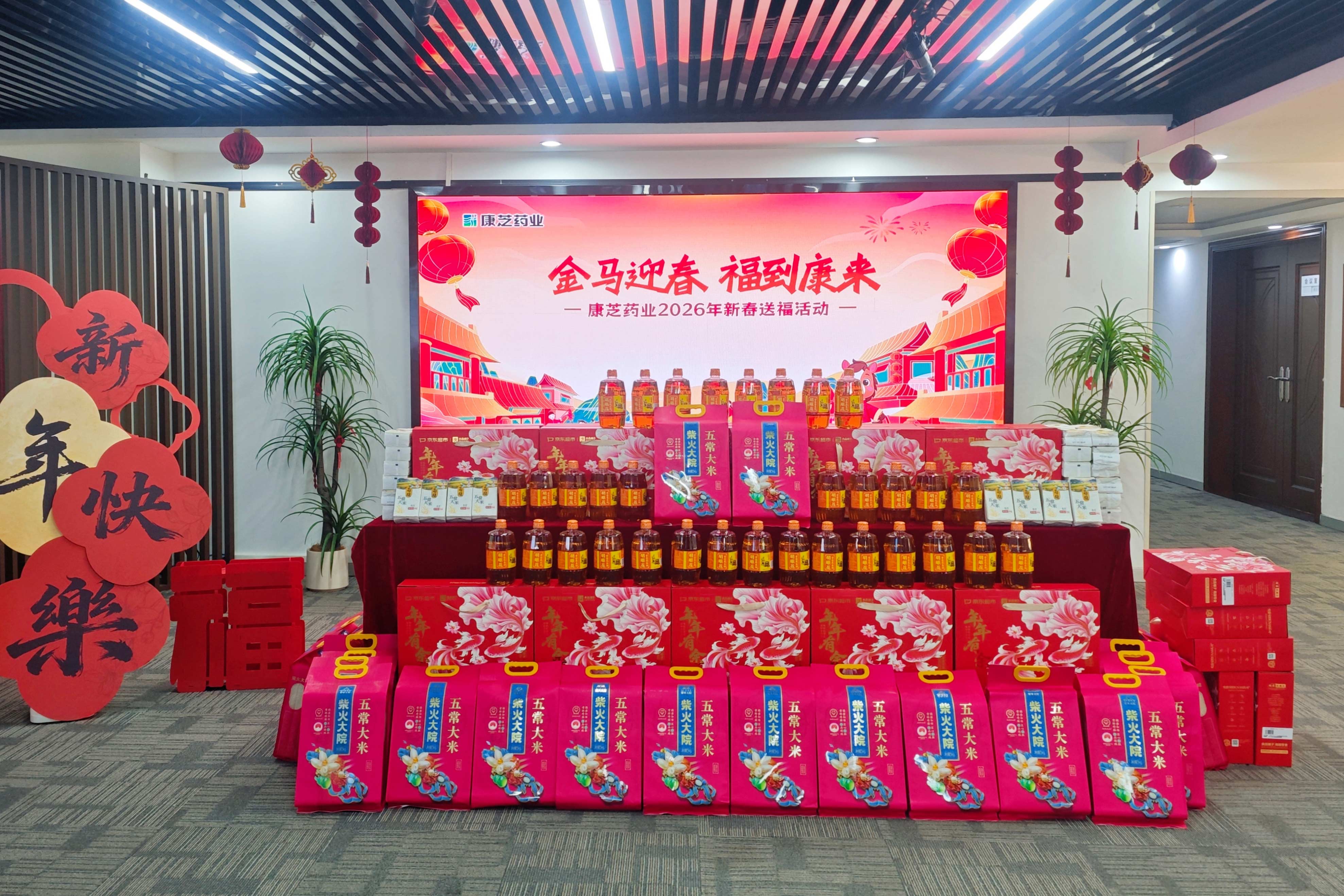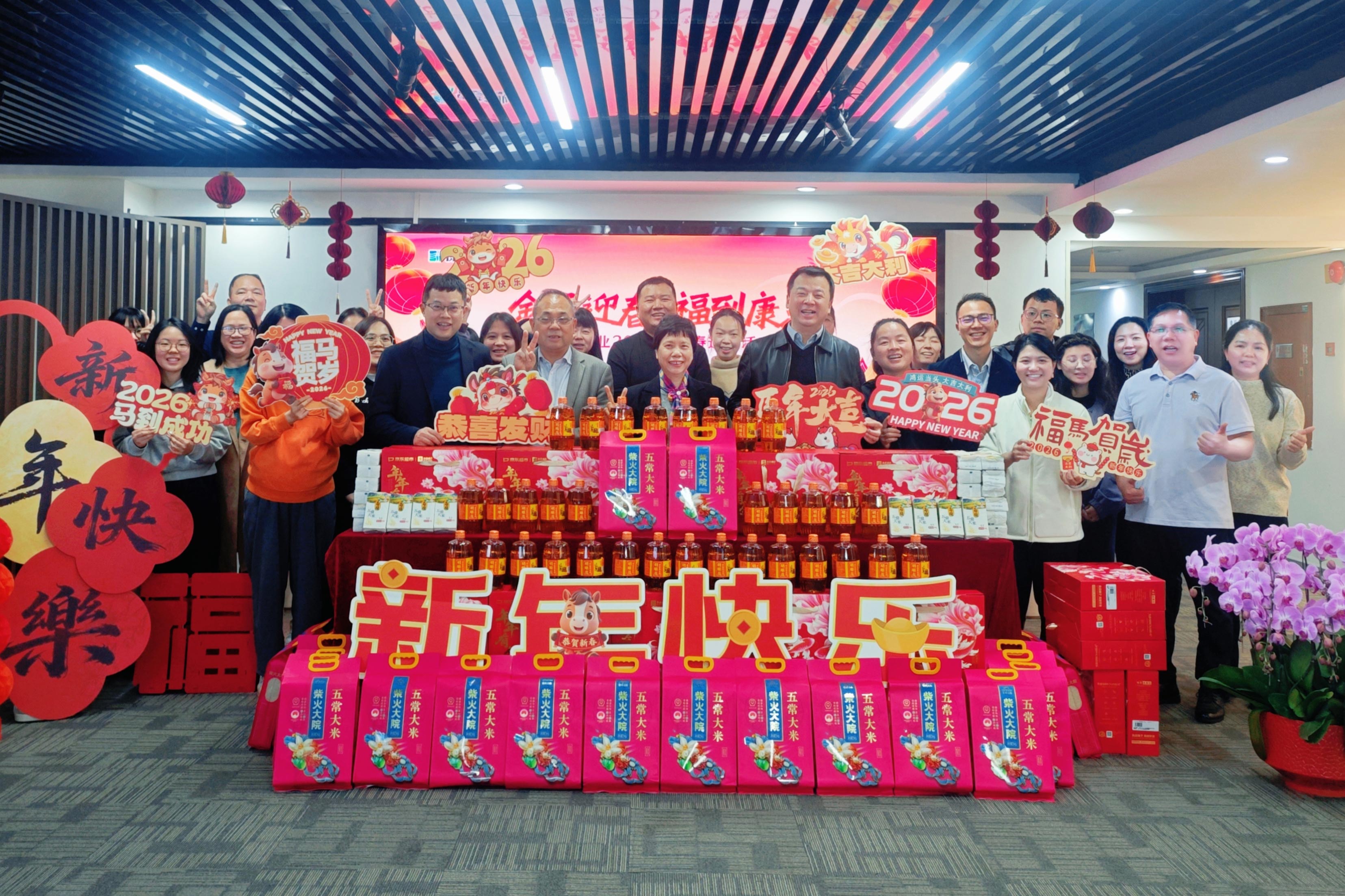金馬迎春,福到康來。為感謝全體員工過去一年的辛勤付出,新春佳節即將來臨之際,康芝藥業組織全國分子公司開展2026馬年新春員工福利派發活動。本次新春福利精心挑選了優質大米、食用油和堅果禮盒,一份份承載公司心意的年貨,跨越山海送到每一位康芝人手上,提前向大家送上節日祝福。