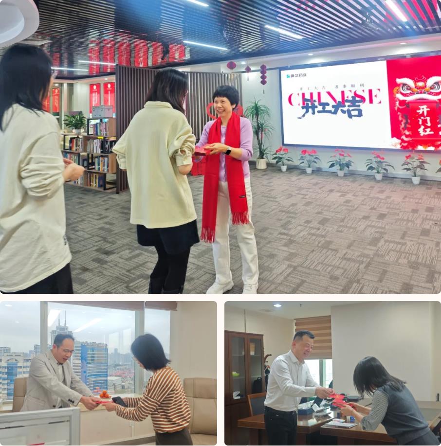 新春復工首日,公司副總裁洪麗萍為廣州區域全體員工派發了開工紅包并送上新春問候,同時鼓勵大家在新的一年里凝心聚力、勇毅前行,以更飽滿的狀態投入工作。